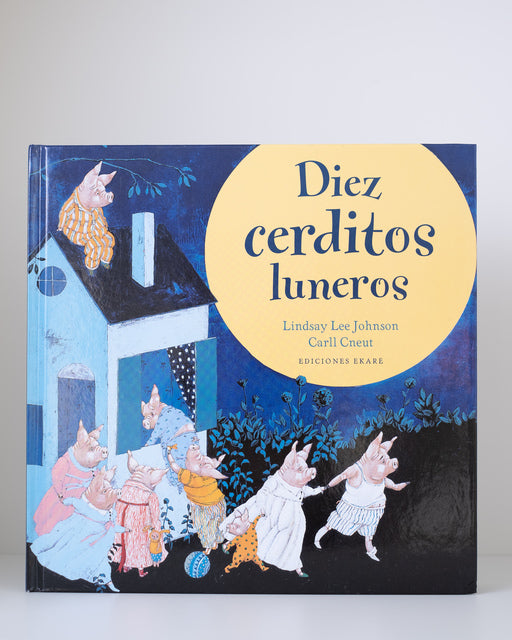 «La luz de la luna llena, baña la noche serena, y ha embrujado a diez cerditos con su magia de hada buena». Diez cerditos muy luneros vagan por la noche oscura. Después de cantar, nadar y bailar, la luna se oculta y todo se queda en penumbras… ¡Todos contienen su aliento! Una aventura nocturna contada en verso para reír y leer en voz alta a la hora de dormir.