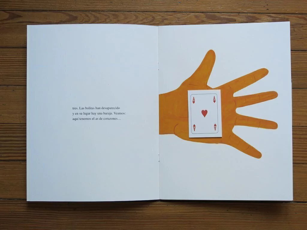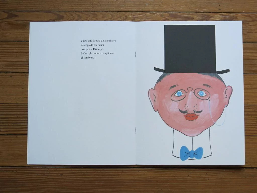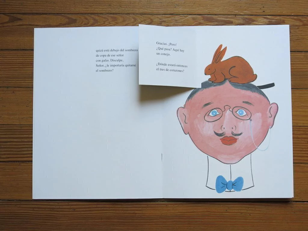 Lo mágico y lo absurdo se cruzan en esta historia contada en páginas de diferentes colores y tamaños. En solapas que ocultan y revelan. Como en un truco, magia pura o literaria, que a cada paso atrapa, cautiva y entretiene al pequeño y gran lector.