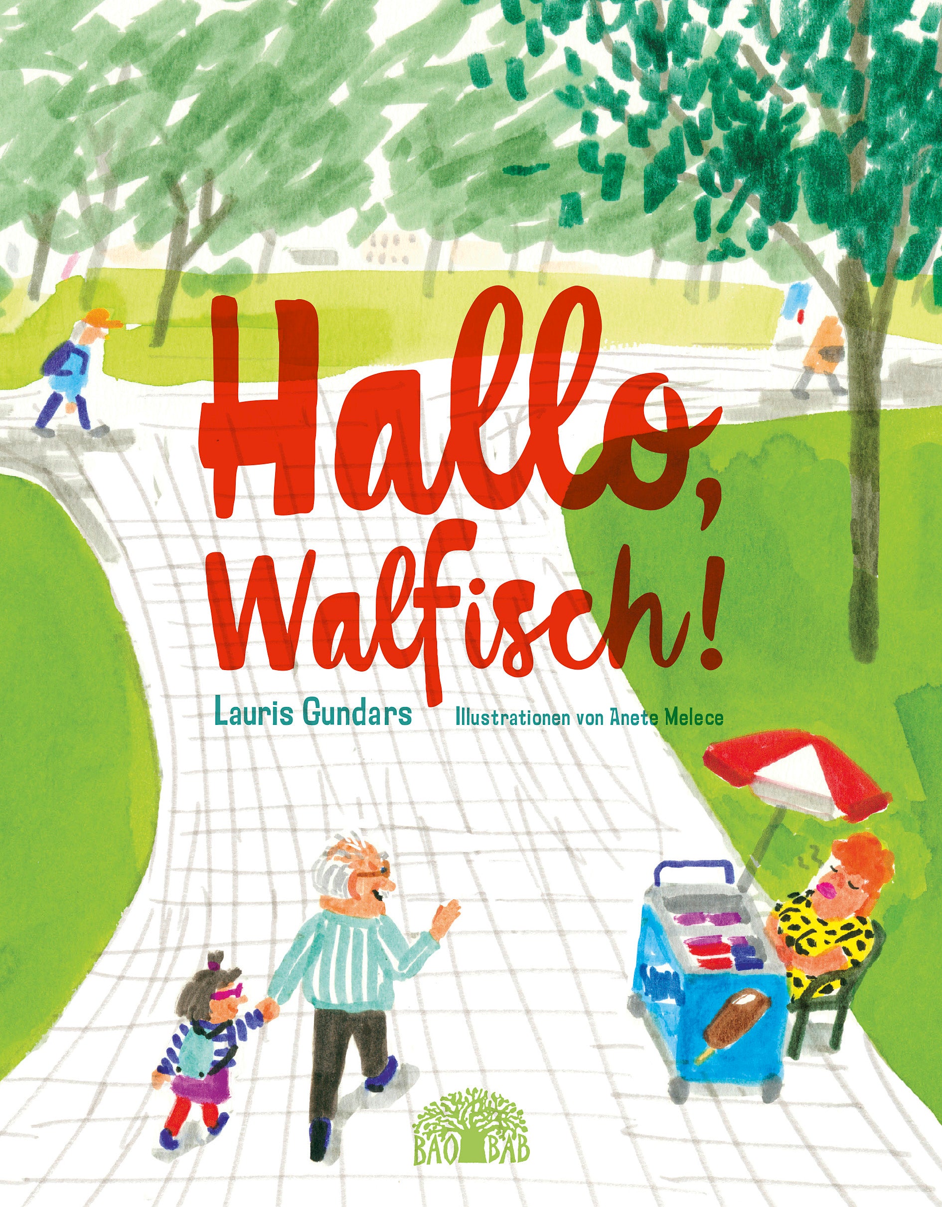 Diese Geschichte handelt von Mücke und Walfisch. Die beiden haben auch normale Namen, aber Mückes Spitznamen hat Walfisch erfunden und Walfischs Spitznamen Mücke. Doch das ist schon lange her, und darum geht es in dieser Geschichte nicht. Der Großvater und seine Enkelin sind im lettischen Riga zu Hause und verbringen oft und gerne Zeit miteinander. Es gibt immer vieles, das Mücke beschäftigt. »Walfisch, warum grüßt du die Menschen nicht?«, fragt sie eines Tages geradeheraus. Ihr war beigebracht worden, immer und überall zu grüßen, sogar den unwirschen Verkäufer im Eckladen. Der Großvater ringt um eine Erklärung, doch die erscheint Mücke nicht plausibel. Sie rückt nicht mehr von ihrem Plan ab: Der Großvater muss lernen zu grüßen, auch wenn das in früheren Zeiten so ganz und gar nicht üblich gewesen war – damals, als das Land von den Sowjets besetzt war und man nicht wusste, wem man trauen konnte. So haben sowohl Mücke wie Walfisch etwas zu lernen: Der Großvater über die heutige Zeit, und die Enkelin über die frühe Zeit, die noch gar nicht so lange her ist. Der umtriebige lettische Autor und Regisseur Lauris Gundars lässt uns dabei die gewitzte Mücke und den etwas brummigen Walfisch im Nu ans Herz wachsen. Anete Melece versetzt uns mit ihren markanten Filzstiftstrichen in den Stadtpark von Riga. Und so hören wir Großvater und Enkelin auf der Parkbank beim Parlieren, Streiten und Sich-Versöhnen zu.
