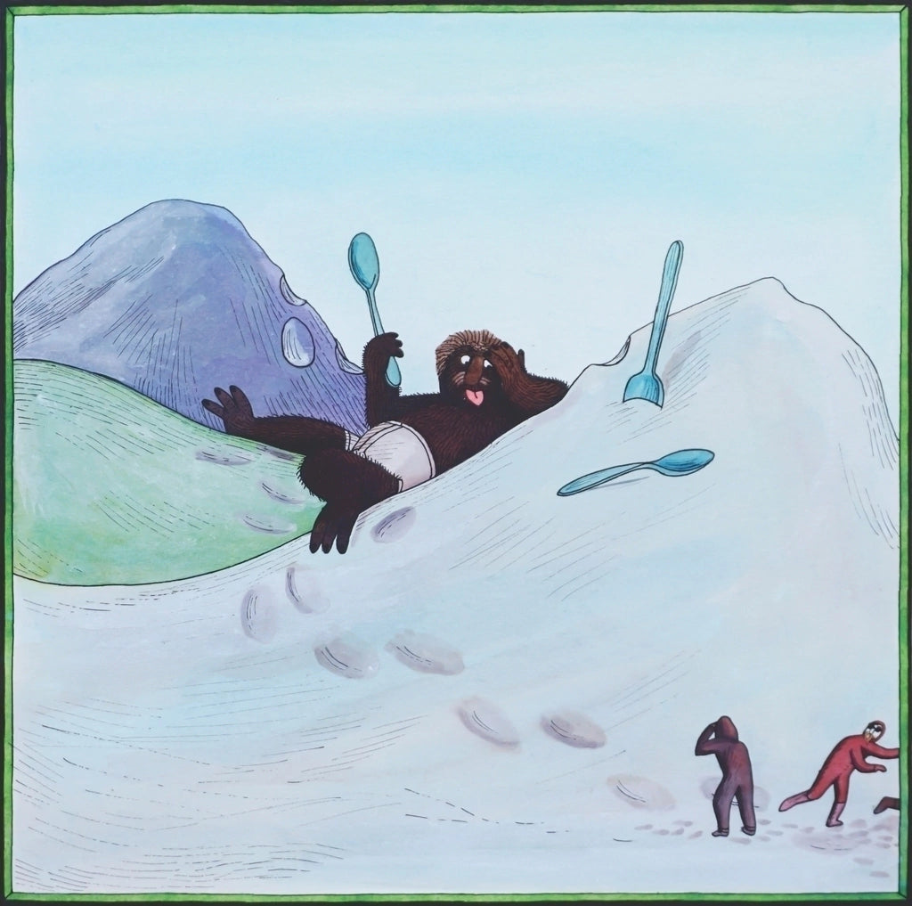 Tres amigos emprenden una expedición en busca de la tierra donde crecen los helados. Allí descubren montañas de pistacho, un volcán en erupción que escupe nubes de crema batida y un monstruo que devora gigantescos conos de helado, uno detrás de otro.
