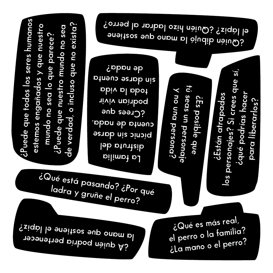 ¡Pellizcame! es un libro-juego presentado dentro de una caja que indaga sobre la realidad, la imaginación y los sueños con humor, intriga, rigor y cuidado.